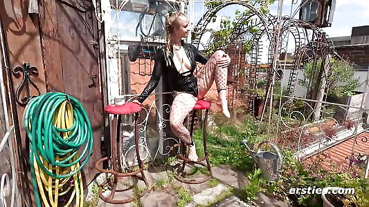 Ersties - Highlight with latex bodysuit and fishnet tights in suze randall shoot idyll