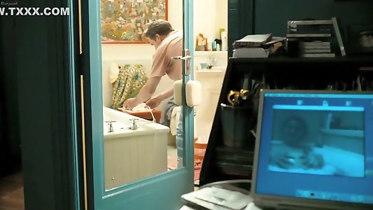 Sneaky twat play in the red-hot bath, while neighbour is in their garden