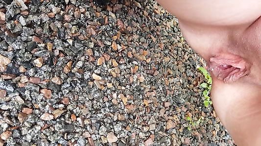 College woman moist vulva outdoor tearing up massive senior gardener knob