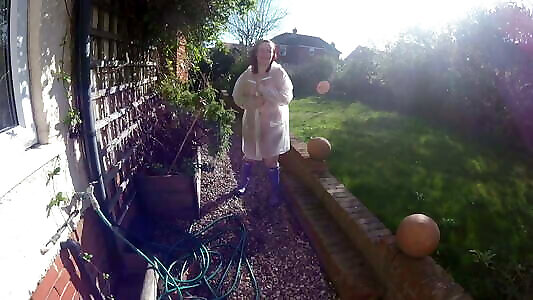 Busty Latex Flower Lady in the Garden