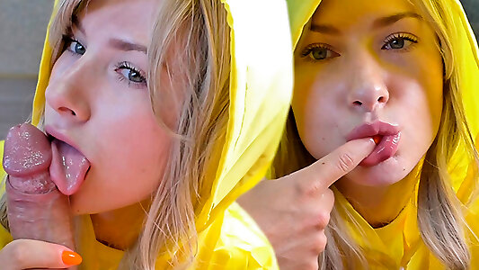 Chick in Raincoat Passionate Fellating Immense Jizz-shotgun until Jizz Mouth