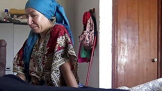 This Turkish granny is Shocked !!! I take out my enormous cock in front of her.