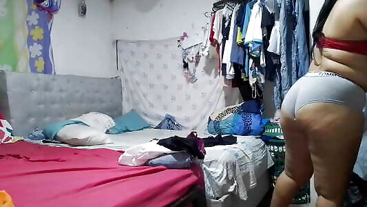 horny stepmom leaves door open when she changes so her stepson can see her big ass