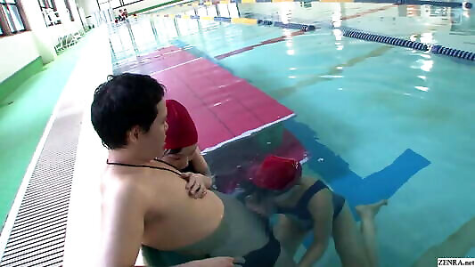 Japanese college girls give swim coach underwater oral