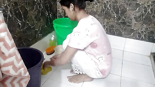 Naughty Indian Damsel Caught Bathroom By Servant Enjoys