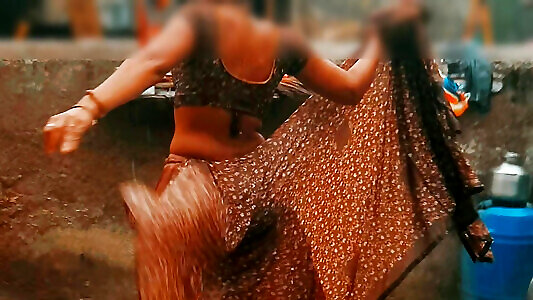 Her stepsister-in-law&039;s elder sister looks gorgeous in a saree after cleaning the house and writing all her clothes and bat