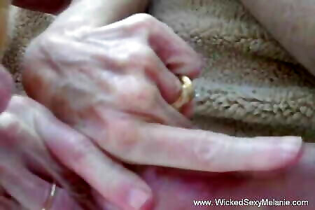 Fat Grandmother rubs gooey fuckbox lips until cumming