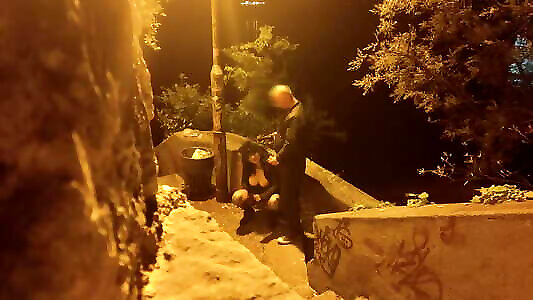 Big tits mother in law in hot lingeri humiliated outdoor with dildo and fat cock