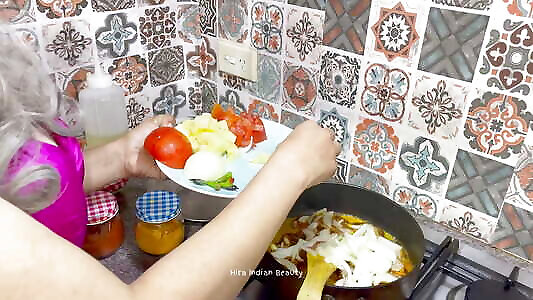 A Romantic Affair of Mother-In-Law with Son-In-Law when daughter is away - Teaches Cooking in Kitchen - Mild and Soft Play