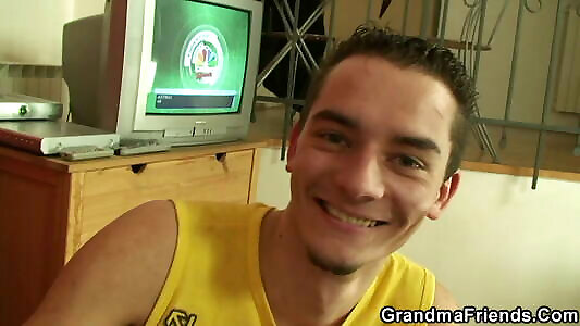 Elder light-haired mummy gf rails his young man rod