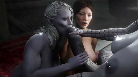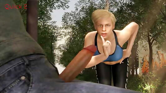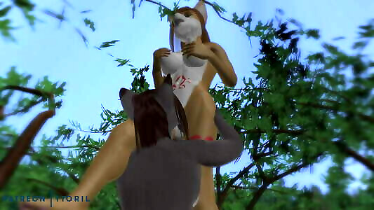 Three Dimensional hentai animation bdsm, female dominance cowgirl, 3some in wooly forest