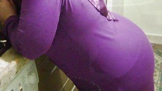 Hot Aunty taking food out of fridge when puts her head inside fridge & Huge jizz flow - Pummel & Cum Behind Butt