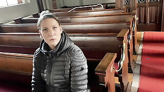 Acolyte fucks naughty blonde milf in the church! Receive the blessed glue!