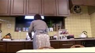 Horny mom observe woman boyfriend do quick fuck in the kitchen