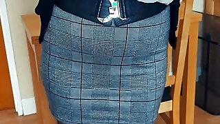 Your 53 year old mature step-aunt in her favourite short tight skirt and open beaver pantyhose.