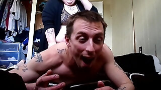 Surprise with strap-on - Blonde pegging guy rigid with a big strap-on