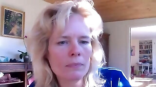 Mature blonde fucking a dildo on webcam